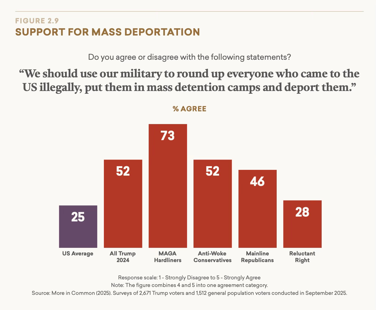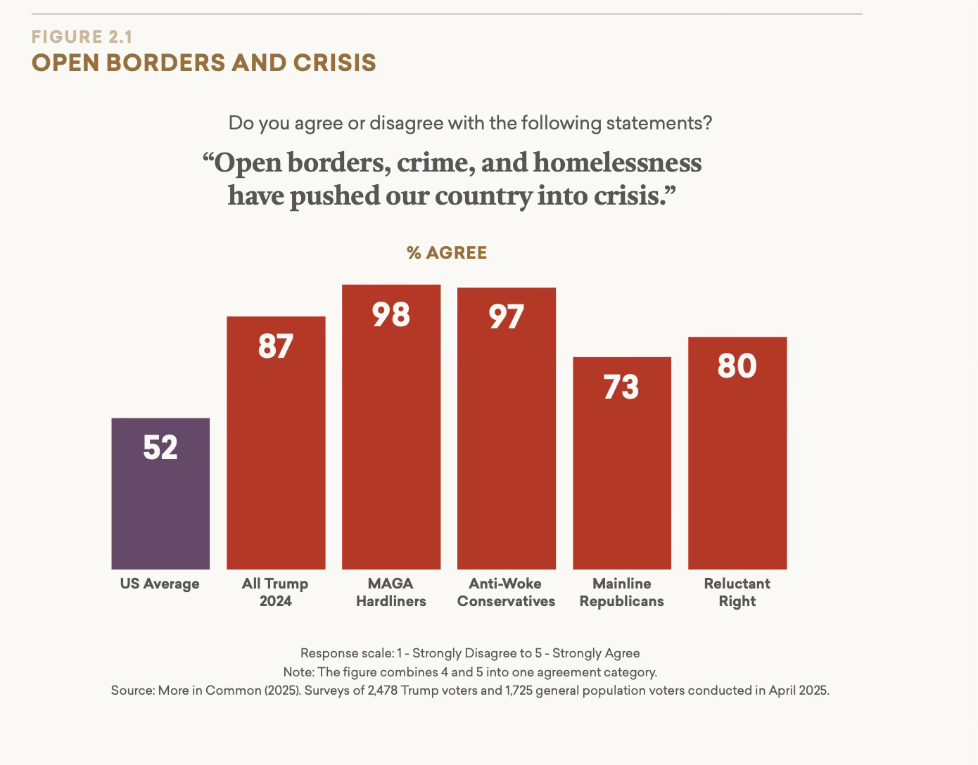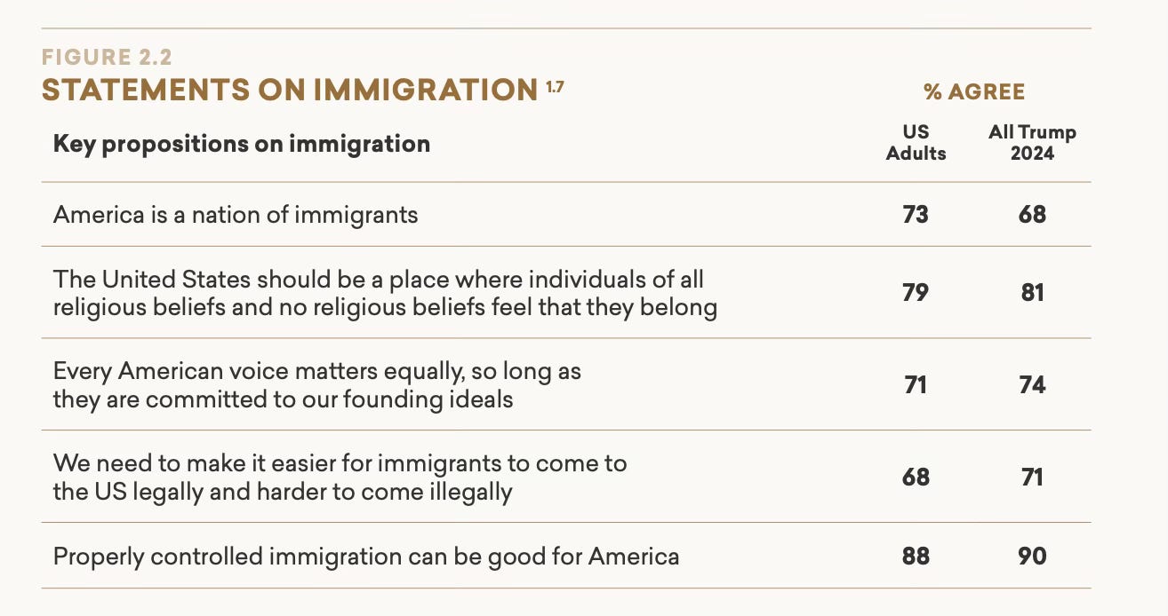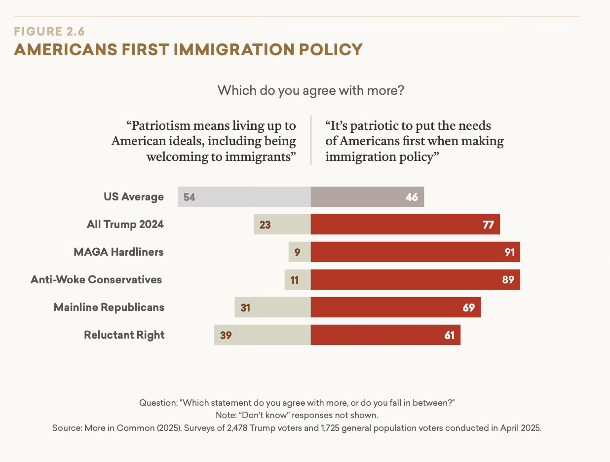Summary: Two weeks ago, More in Common released the most comprehensive study to date of the Americans who voted for President Trump in November 2024. Beyond MAGA: A Profile of the Trump Coalition provides a detailed segmentation of these voters and their views on the major issues confronting our country and the world. This newsletter is the second in a multi-part series on Beyond MAGA and explores one of the most contentious subjects in the country right now: immigration policy.