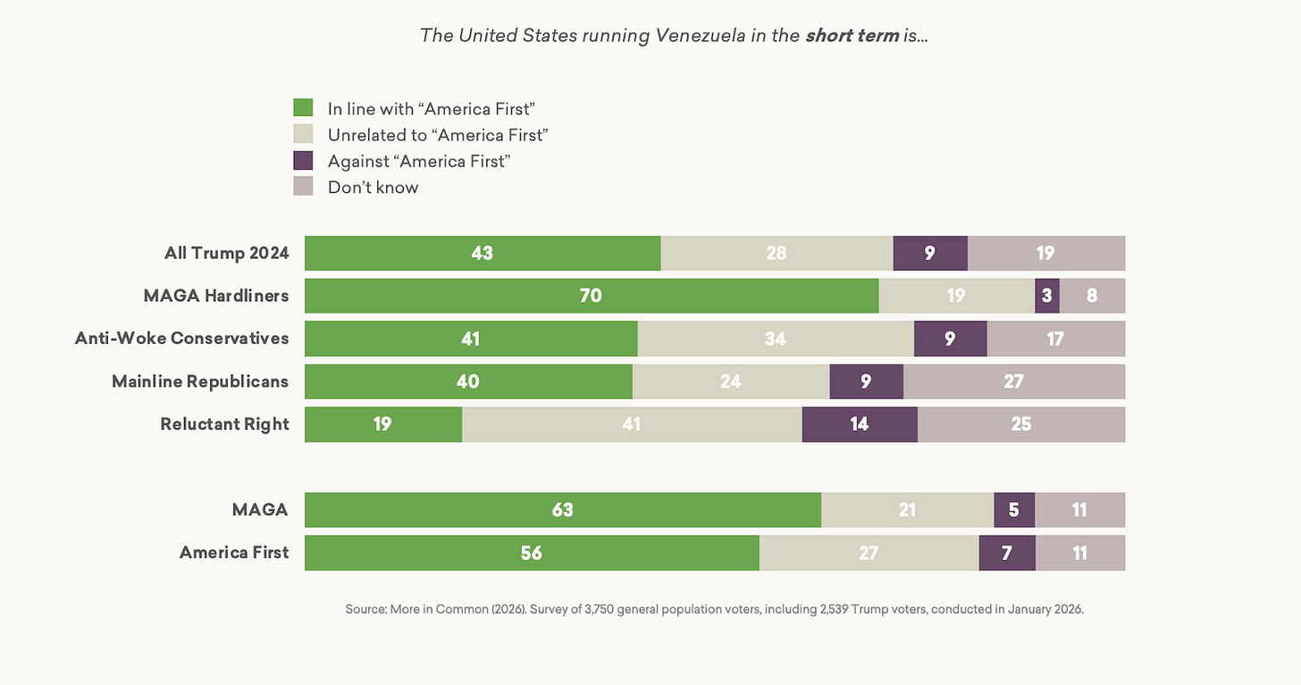 To the President’s voters, the U.S. military strike on Venezuela was not a deviation from, but a successful execution of his campaign promise to make America safer and stronger. Put simply, as long as President Trump can convince his coalition that his policies will advance U.S. interests, they will be seen as consistent with ‘America First’ and receive majority support from his base –– be it isolationism when it comes to NATO or expansionism when it comes to the Americas and Greenland.